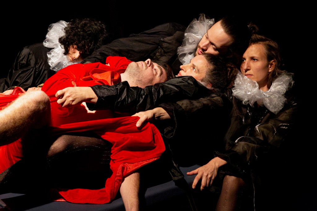 Who is under treatment here: the audience, the performers, the theatre space? We Are All Mothers WAAM is a journey to collective healing that draws on the fact that all our bodies and experiences are connected. Together, the performers create a space in which the individual and the collective melt into one. Bringing their individual symptoms to the stage, they transform them into joint experiences, challenging the separation between health and art and creating co-existence, co-regulation, understanding and a sense of support. The audience witnesses and becomes part of this transformation process through dance and music that dissolves the lines between performer and spectator, healer and patient.