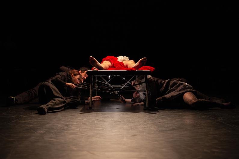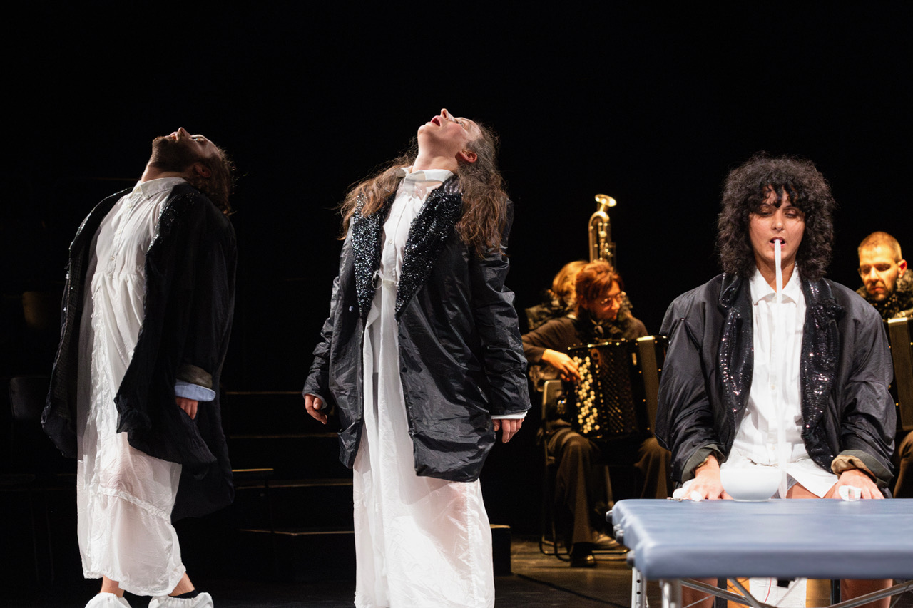 Who is under treatment here: the audience, the performers, the theatre space? We Are All Mothers WAAM is a journey to collective healing that draws on the fact that all our bodies and experiences are connected. Together, the performers create a space in which the individual and the collective melt into one. Bringing their individual symptoms to the stage, they transform them into joint experiences, challenging the separation between health and art and creating co-existence, co-regulation, understanding and a sense of support. The audience witnesses and becomes part of this transformation process through dance and music that dissolves the lines between performer and spectator, healer and patient.