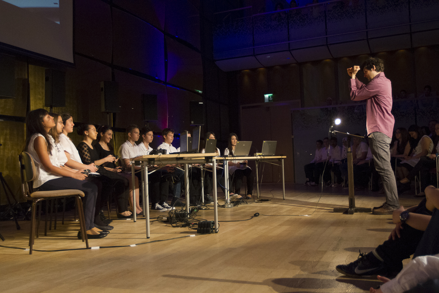 Lisztplayer is a software developed for the Vienna Philharmonic’s music education program passwort klassik. It is a sample player using orchestra samples from Franz Liszt’s Les Preludes, which are played back through different effects and transformations using video game controller. A first piece composed with this software for 12 players (14-year-old pupils of the Realgymnasium Henriettenplatz) was performed on 28.4.2013 at the Musikverein Wien, gläserner Saal.